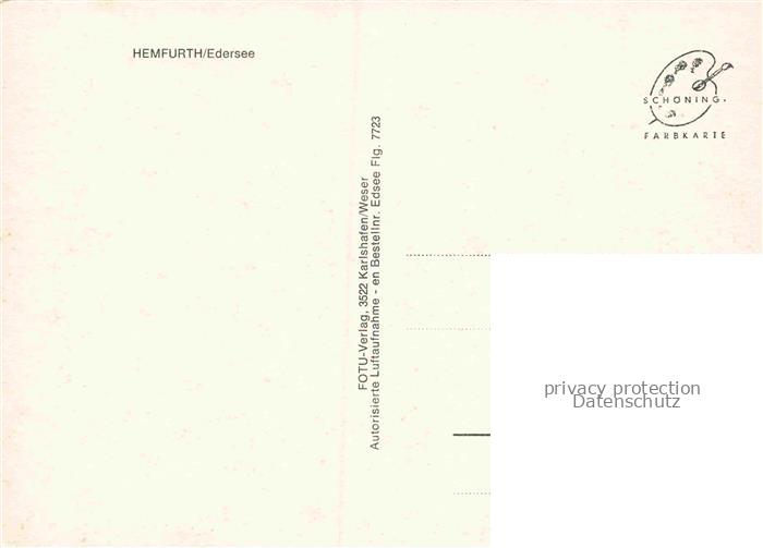 74105091 Hemfurth-Edersee Edertal Hessen Fliegeraufnahme postalisch nicht gelaufen Erhaltung siehe scans [FriedD77] Frie Katcode 11110006635009