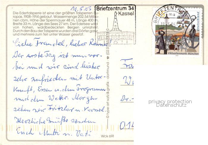 73704441 alte Postkarte Hemfurth-Edersee Edertalsperre Sperrmauer Edersee postalisch gelaufen Fliegeraufnahme Erhaltung siehe scans [FriedD77] KatCode: 11110006635009
