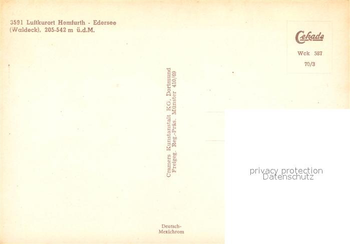 73087467 Hemfurth-Edersee Fliegeraufnahme postalisch nicht gelaufen Erhaltung siehe scans [NatalD47] KatCode: 11110006635009