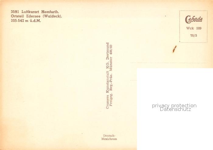 73127711 Hemfurth-Edersee Fliegeraufnahme Edersee postalisch nicht gelaufen Erhaltung siehe scans [KathaD81] KatCode: 11110006635009