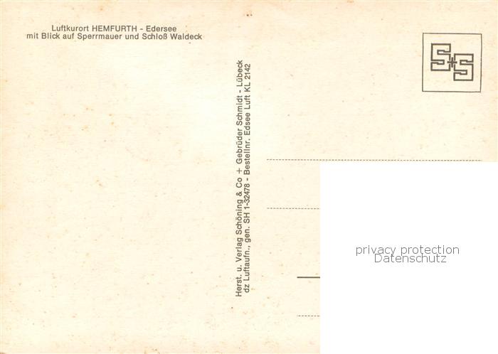 73755855 Hemfurth-Edersee Fliegeraufnahme mit Sperrmauer und Schloss Waldeck postalisch nicht gelaufen Erhaltung siehe scans [FriedD77] KatCode: 11110006635009