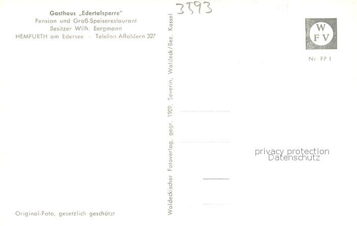 73701842 Hemfurth-Edersee Gasthaus Edertalsperre Aussenansicht postalisch nicht gelaufen Erhaltung siehe scans [LiesaD40] KatCode: 11110006635009