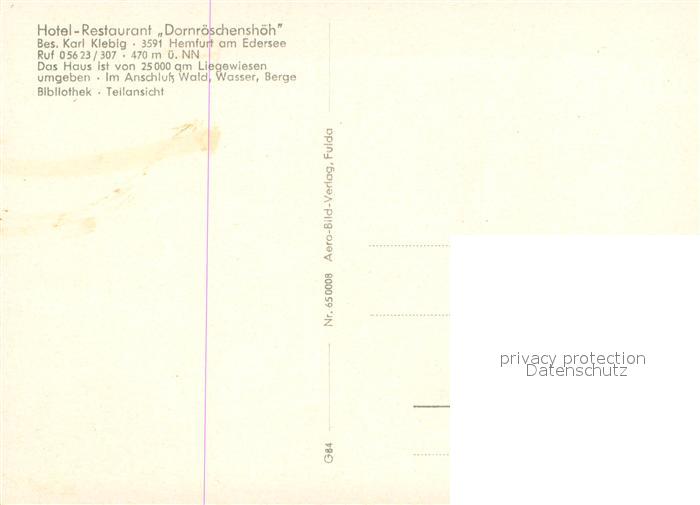 73724511 Hemfurth-Edersee Hotel Restaurant Dornroeschenshoeh Kaminecke postalisch nicht gelaufen Erhaltung siehe scans [FriedD77] KatCode: 11110006635009