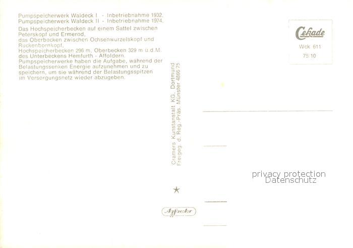 73712786 Hemfurth-Edersee Pumpspeicherwerk Waldeck Speicherbecken postalisch nicht gelaufen Fliegeraufnahme Erhaltung siehe scans [FriedD77] KatCode: 11110006635009