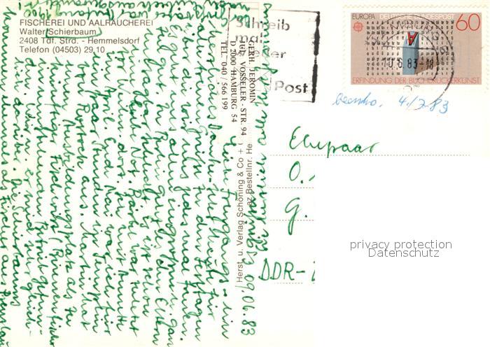 72969888 alte Postkarte Hemmelsdorf Schierbaums Raeucheraale postalisch gelaufen Erhaltung siehe scans [LiesaD40] KatCode: 11110001055042