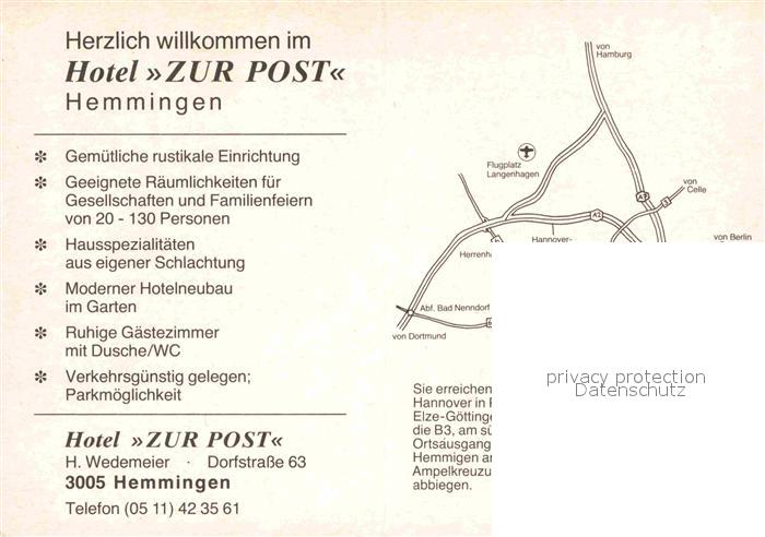 72678566 Hemmingen Hannover Hotel Zur Post postalisch nicht gelaufen Werbekarte (keine Postkarte) Erhaltung siehe scans [FriedD77] KatCode: 11110003241007