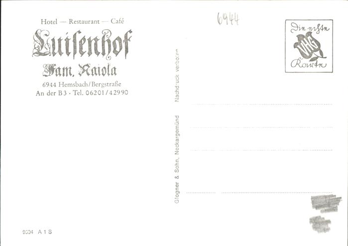 41271809 Hemsbach Bergstrasse Hotel Cafe Luisenhof KatCode 11110008226031