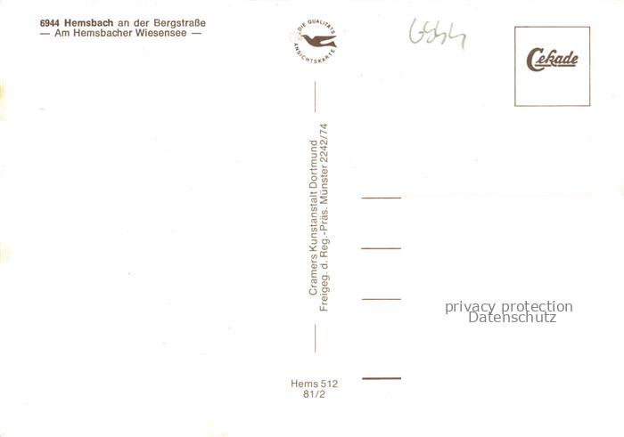 74048184 Hemsbach Bergstrasse Panorama Hemsbacher Wiesensee mit See-Hotel postalisch nicht gelaufen Fliegeraufnahme Erhaltung siehe scans [FriedD77] KatCode: 11110008226031