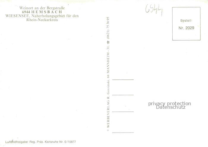 74048209 Hemsbach Bergstrasse Panorama Weinort am Wiesensee Naherholungsgebiet postalisch nicht gelaufen Fliegeraufnahme Erhaltung siehe scans [FriedD77] KatCode: 11110008226031