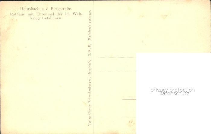 71906744 Hemsbach Bergstrasse Rathaus mit Ehrenmal postalisch nicht gelaufen Erhaltung siehe scans KatCode: 11110008226031