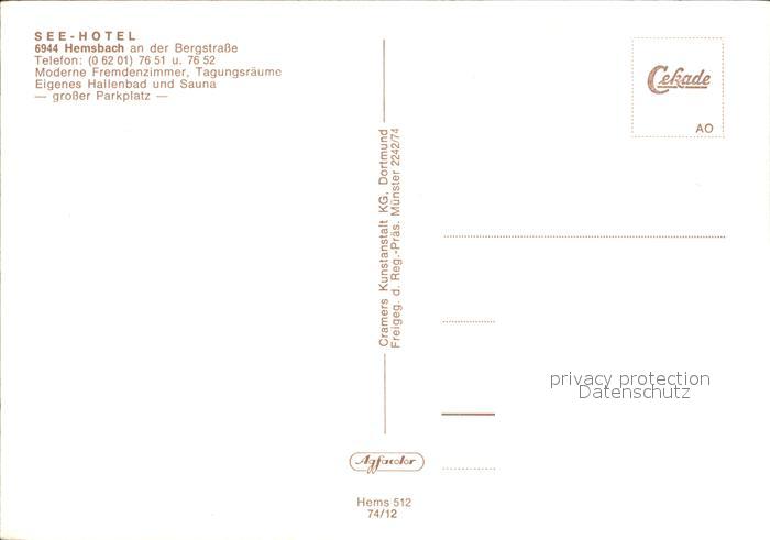 72106891 Hemsbach Bergstrasse See- Hotel postalisch nicht gelaufen Erhaltung siehe scans KatCode: 11110008226031