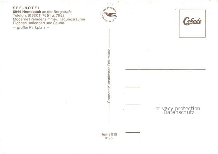 74048222 Hemsbach Bergstrasse See-Hotel Restaurant Terrasse Hallenbad Badestrand am Wiesensee postalisch nicht gelaufen Erhaltung siehe scans [FriedD77] KatCode: 11110008226031