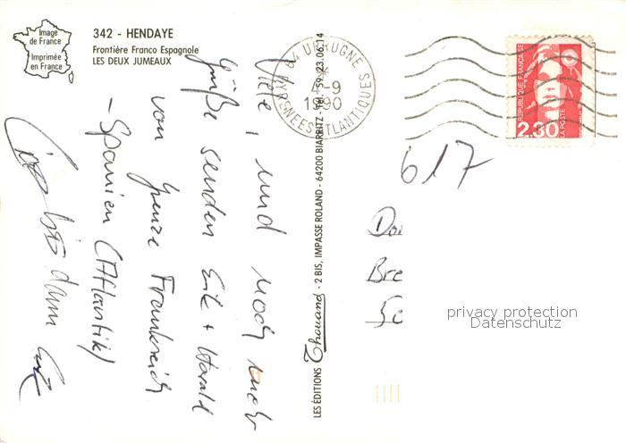 13721934 Hendaye 64 Fliegeraufnahme Kueste Les Deux Jumeaux postalisch gelaufen Erhaltung siehe scans [LiesaD40] carte postale Lies Katcode 11170064164260