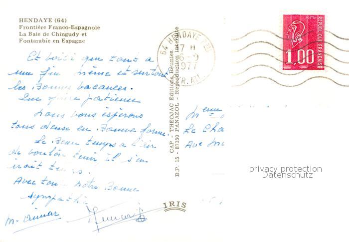 13814781 Hendaye 64 Frontiere Franco Espagnole La Baie de Chingudy et Fontarabie en Espagne postalisch gelaufen Erhaltung siehe scans [WerneD78] carte postale Wern Katcode 11170064164260
