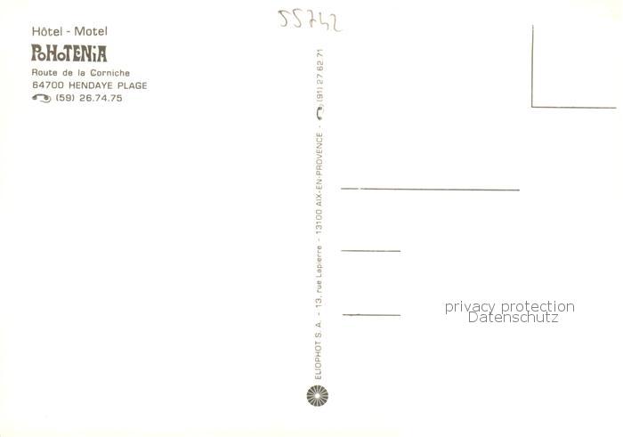 13796430 Hendaye 64 Hotel Motel Pohotenia postalisch nicht gelaufen Erhaltung siehe scans [WerneD78] Wern Katcode 11170064164260
