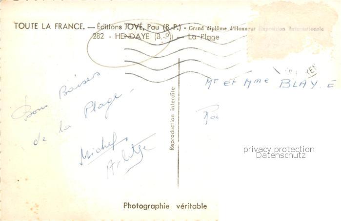 13785547 Hendaye 64 Strand-Ansicht postalisch gelaufen Erhaltung siehe scans [LiesaD40] carte postale Lies Katcode 11170064164260