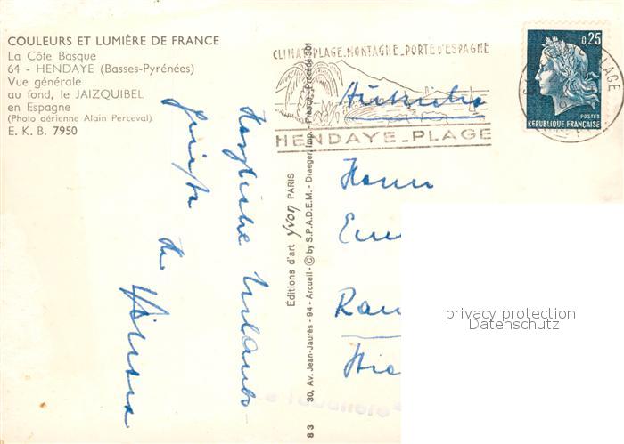 13855751 Hendaye 64 Vue generale aerienne postalisch gelaufen Erhaltung siehe scans [WerneD78] carte postale Wern Katcode 11170064164260