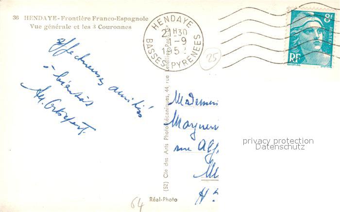 13529824 carte postale Hendaye Pyrenees Atlantiques avec les 3 Couronnes postalisch gelaufen Erhaltung siehe scans [LiesaD40] KatCode: 11170064164260