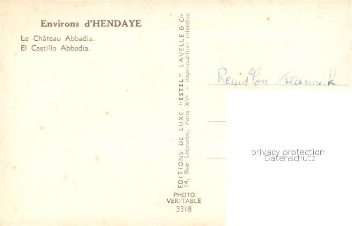 13546358 Hendaye Pyrenees Atlantiques Chateau Abbadia Schloss postalisch nicht gelaufen Erhaltung siehe scans [FriedD77] KatCode: 11170064164260