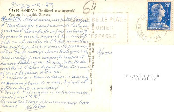 13536837 carte postale Hendaye Pyrenees Atlantiques Fontarabie postalisch gelaufen Erhaltung siehe scans [LiesaD40] KatCode: 11170064164260