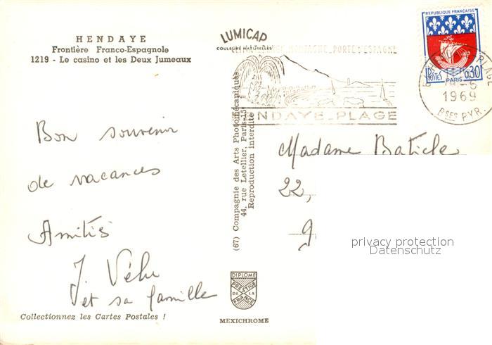13589762 Hendaye Pyrenees Atlantiques Frontiere Franco Espagnole Le casino et les Deux Jumeaux KatCode 11170064164260