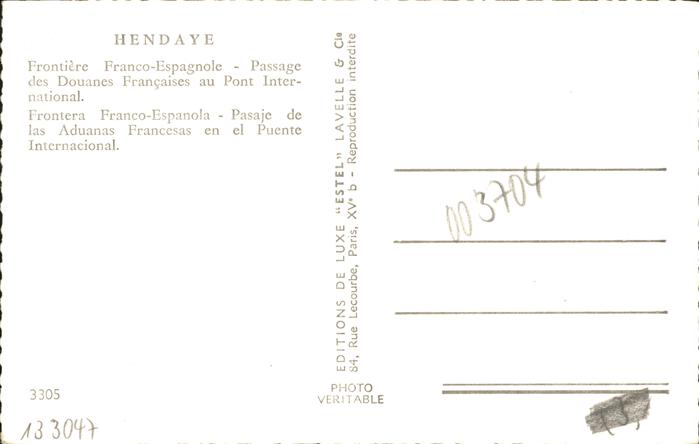 11322130 Hendaye Pyrenees Atlantiques Frontiere Franco_Espagnole Passage des Douanes Francaises au Pont International Grenzübergang KatCode 11170064164260