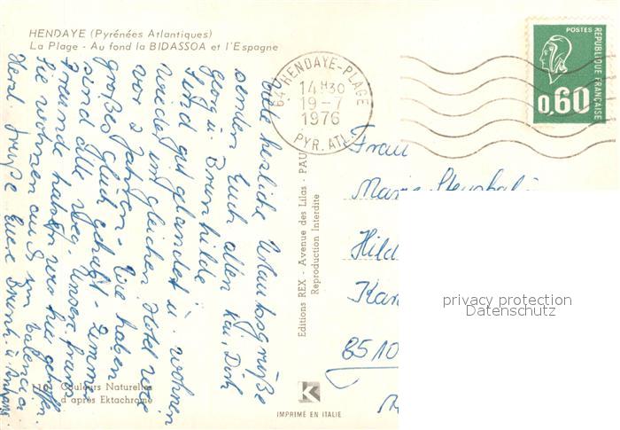 13363774 carte postale Hendaye Pyrenees Atlantiques La Plage au fond La Bidassoa e l’Espagne vue aérienne postalisch gelaufen Erhaltung siehe scans [FriedD77] KatCode: 11170064164260