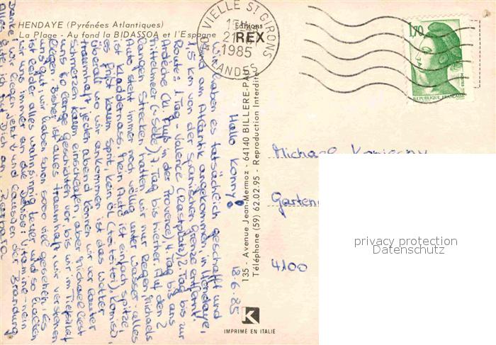 12619551 carte postale Hendaye Pyrenees Atlantiques La Plage au fond la Bidassoa et l’Espagne vue aerienne postalisch gelaufen Erhaltung siehe scans [FriedD77] KatCode: 11170064164260