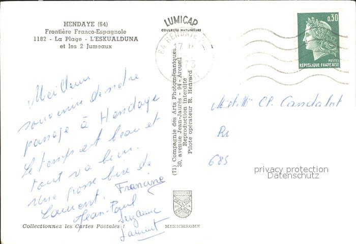 12324941 carte postale Hendaye Pyrenees Atlantiques La Plage Eskualduna postalisch gelaufen Erhaltung siehe scans KatCode: 11170064164260