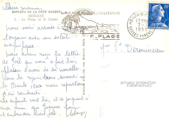 13593812 Hendaye Pyrenees Atlantiques La Plage et le Casino postalisch gelaufen Erhaltung siehe scans [WerneD78] carte postale Wern Katcode 11170064164260