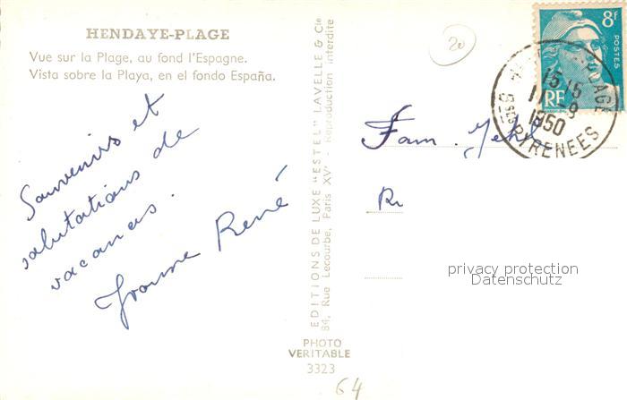 13530231 carte postale Hendaye Pyrenees Atlantiques Plage postalisch gelaufen Erhaltung siehe scans [LiesaD40] KatCode: 11170064164260