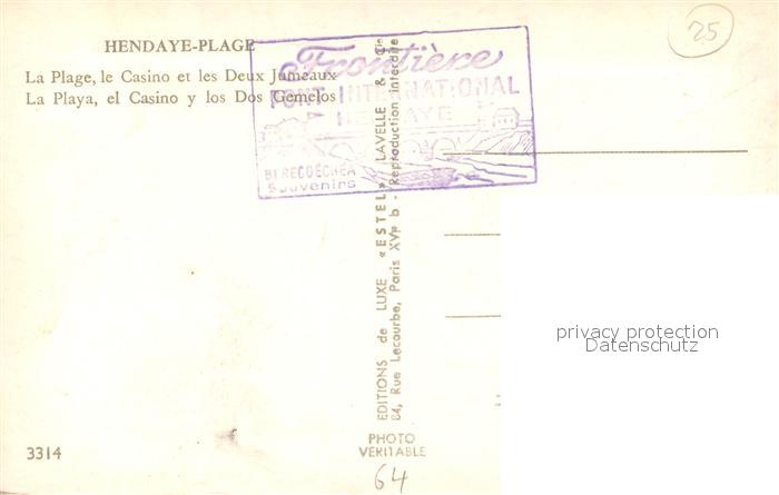 13529828 Hendaye Pyrenees Atlantiques Plage Casino et les deux Jumeaux postalisch nicht gelaufen Erhaltung siehe scans [LiesaD40] KatCode: 11170064164260