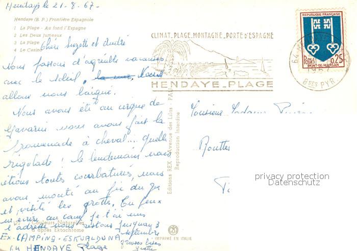 13537566 carte postale Hendaye Pyrenees Atlantiques Plage Frontière Espagne Côte Atlantique vue aérienne postalisch gelaufen Erhaltung siehe scans [FriedD77] KatCode: 11170064164260