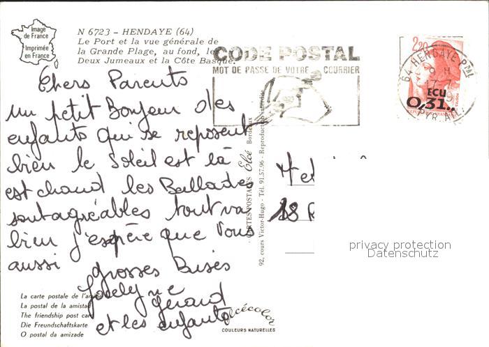 11860494 carte postale Hendaye Pyrenees Atlantiques Port Grande Plage Deux Jumeaux Cote Basque postalisch gelaufen Erhaltung siehe scans KatCode: 11170064164260