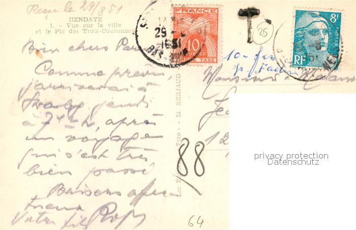 13529818 carte postale Hendaye Pyrenees Atlantiques Ville et Pic de Trois Couronnes postalisch gelaufen Erhaltung siehe scans [LiesaD40] KatCode: 11170064164260