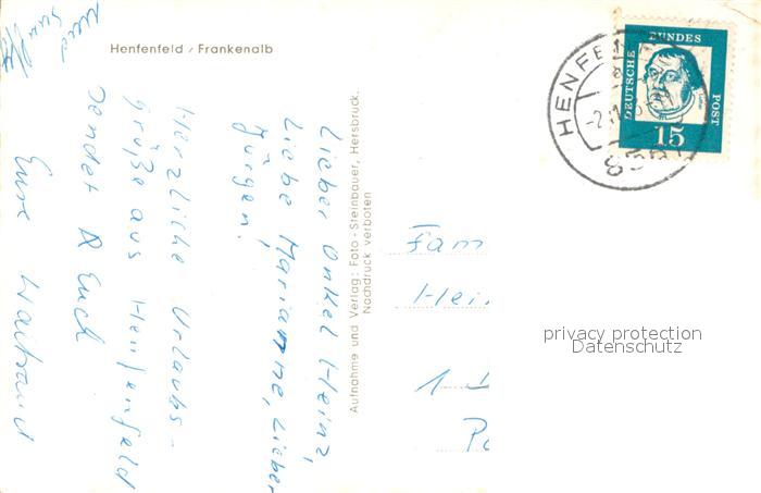 73671788 alte Postkarte Henfenfeld Ansicht vom Waldrand aus Frankenalb postalisch gelaufen Erhaltung siehe scans [FriedD77] KatCode: 11110009574131