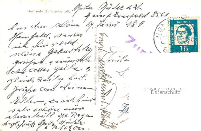 43343486 alte Postkarte Henfenfeld Panorama Schloss Kirche Schlosshof postalisch gelaufen Erhaltung siehe scans [WerneD78] KatCode: 11110009574131