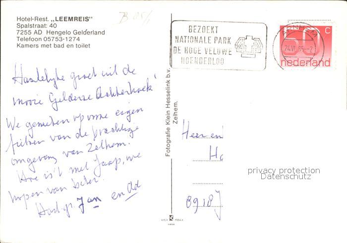 old postcard Hengelo Hotel Restaurant Leemreis Kerk Kirche postalisch gelaufen Erhaltung siehe scans