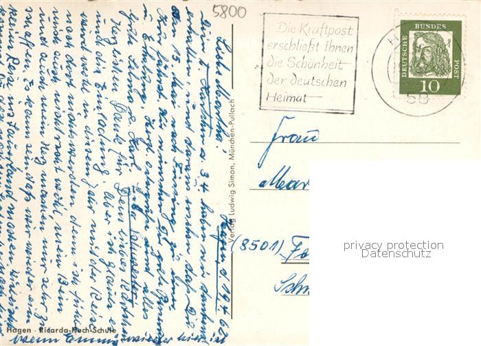 73709141 alte Postkarte Hengstey See Hagen Ricarda-Huch-Schule postalisch gelaufen Erhaltung siehe scans [LiesaD40] KatCode: 11110005914000