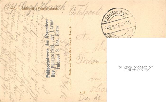 13528554 carte postale Henin-Lietard Vue partielle postalisch gelaufen Feldpostamt (Stempel) Erhaltung siehe scans [WerneD78] KatCode: 11170062762427