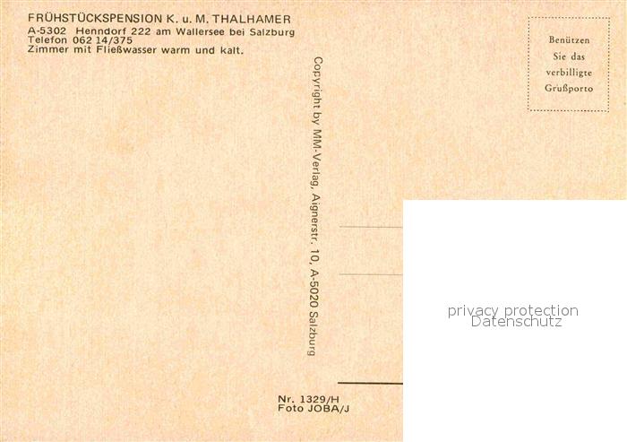 12882383 Henndorf Wallersee Fruehstueckspension Thalhamer postalisch nicht gelaufen Erhaltung siehe scans [KathaD81] KatCode: 11390323050317