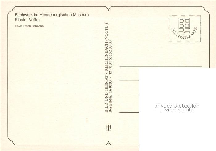 73667631 Henneberg Meiningen Fachwerk im Hennebergischen Museum Kloster Vessra postalisch nicht gelaufen Erhaltung siehe scans [WerneD78] KatCode: 11110016066028