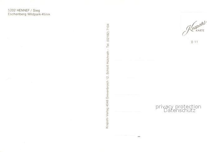 73720475 Hennef Sieg Eschenberg Wildpark Klinik postalisch nicht gelaufen Erhaltung siehe scans [FriedD77] KatCode: 11110005382020