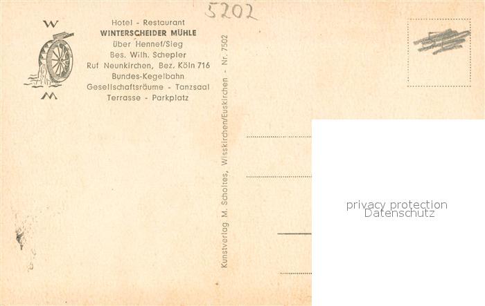 73693774 Hennef Sieg Hotel Restaurant Winterscheider Muehle postalisch nicht gelaufen Erhaltung siehe scans [FriedD77] KatCode: 11110005382020