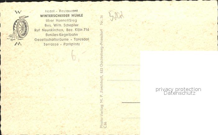 72028609 Hennef Sieg Hotel Restaurant Winterscheider Muehle postalisch nicht gelaufen Erhaltung siehe scans KatCode: 11110005382020