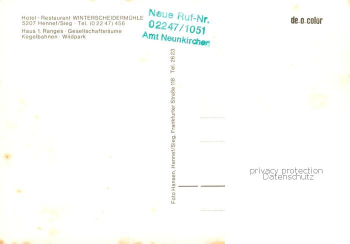 73813426 Hennef Sieg Hotel Restaurant Winterscheidermuehle postalisch nicht gelaufen Erhaltung siehe scans [WerneD78] KatCode: 11110005382020