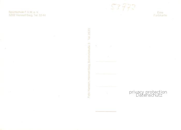 73865680 Hennef Sieg Sportschule F.V.M. e.V. Freibad Sportanlagen postalisch nicht gelaufen Erhaltung siehe scans [FriedD77] KatCode: 11110005382020