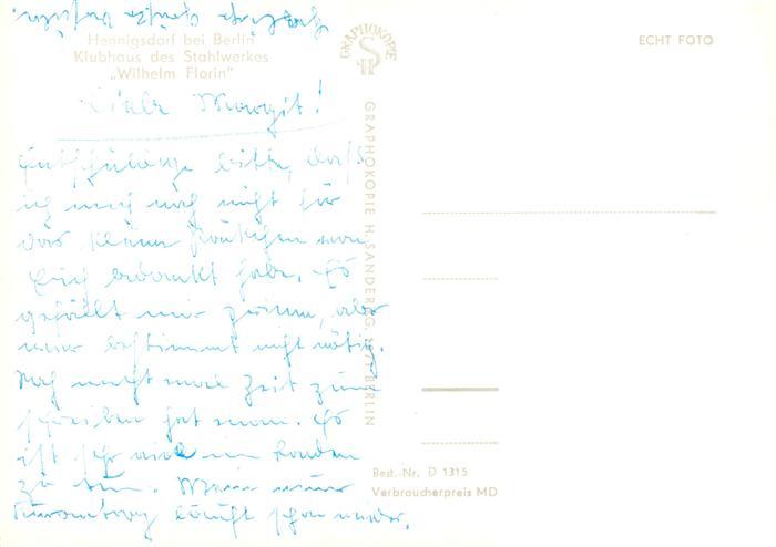 73879611 Hennigsdorf Klubhaus des Stahlwerkes Wilhelm Florin postalisch nicht gelaufen Erhaltung siehe scans [FriedD77] KatCode: 11110012065136