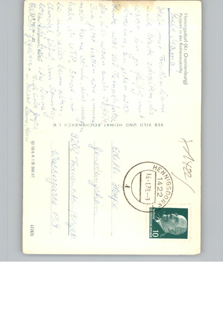 31177951 Hennigsdorf Post postalisch nicht gelaufen KatCode: 11110012065136