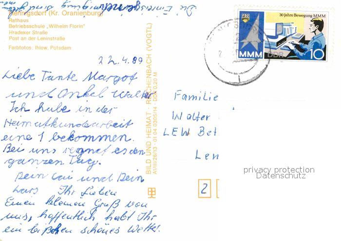 72877811 alte Postkarte Hennigsdorf Rathaus Betriebsschule Wilhelm Florian Hradecker Strasse postalisch gelaufen Erhaltung siehe scans [AndreD76] KatCode: 11110012065136